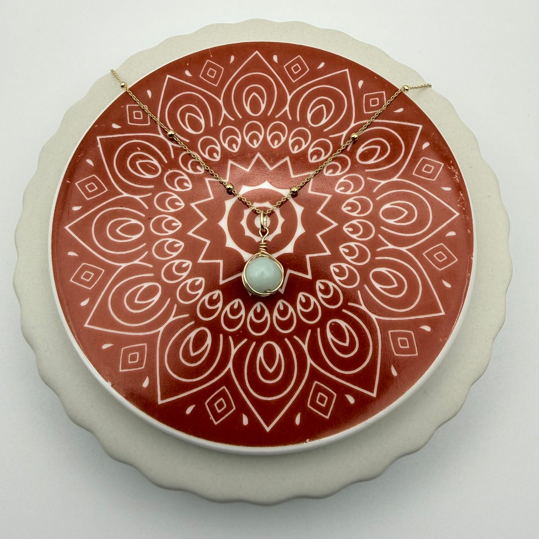 Gorgeous Gold Vermeil Satellite chain featuring a pale turquoise-green chinese Amazonite bead.
