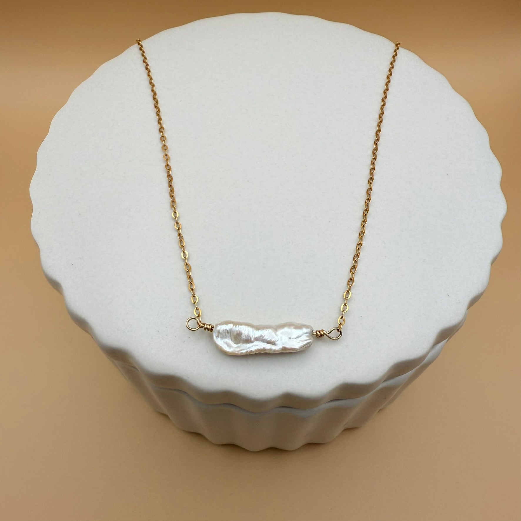 Gold Pearl Bar Necklace