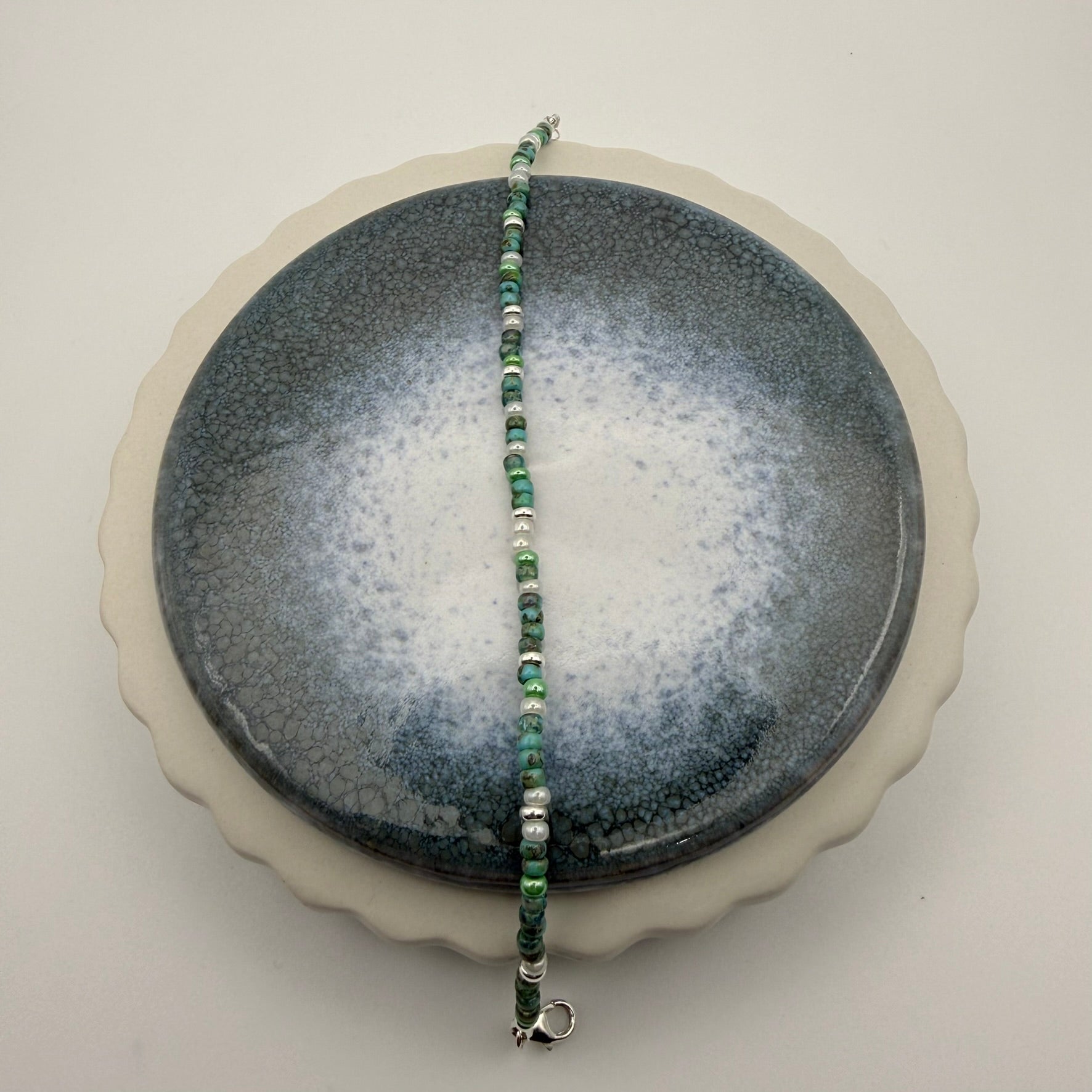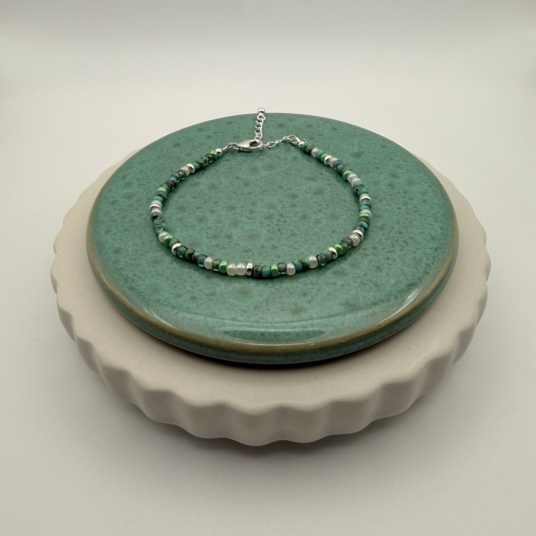 A favourite of ours, Sea Foam is made up of varying shades of sea green and pearl with silver accents.