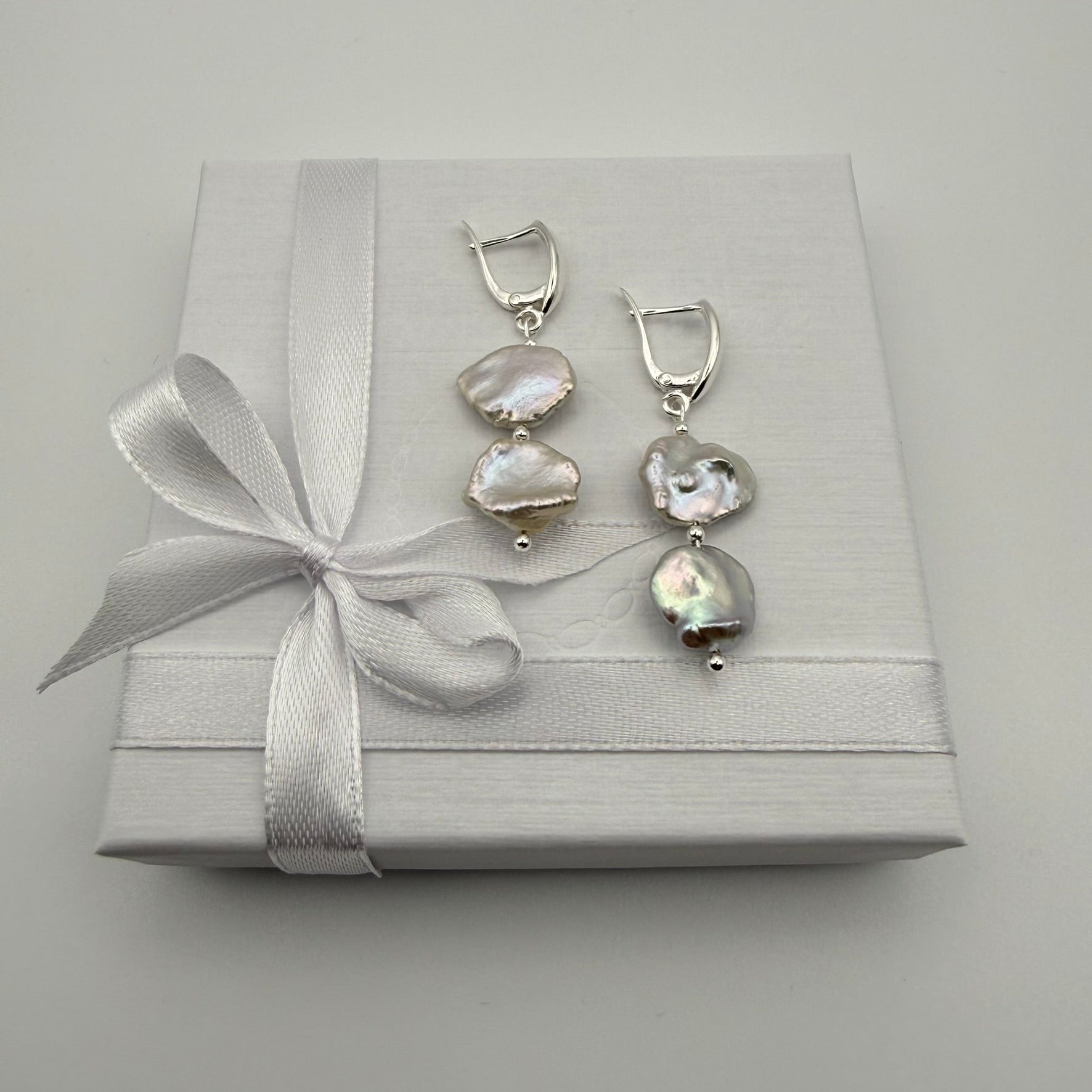Sterling Silver, Keshi Pearl Petal drop Earrings